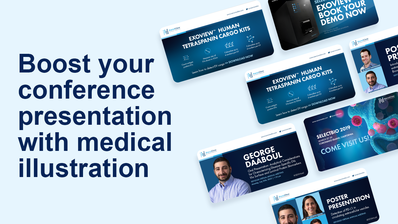 Medical illustrators are skilled at knowing how best to engage with your target audience, not only do we get your science and technology, but we also have an understanding of who you are pitching your ideas to. We have a wealth of experience in creating visual material from your trade stand to your social media accounts. Bringing on board an experienced medical illustration team can not only save you a lot of time by putting together a slick branded package of materials, but can also insure that your visibility is maximised and memorable.