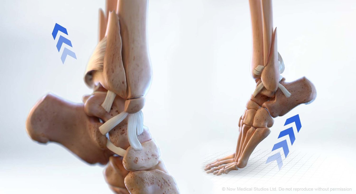 Something that was missing in existing animations available on the market was the ligaments and the avulsion fractures that occur when the ligaments pull fragments off the bone away. This was identified as one of the key points we wanted to convey in the animations.
